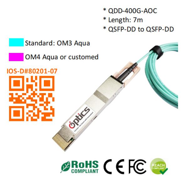 IOS-D#80201-07, iQSFPDD-400G-AOC7M, 400G QSFPDD to QSFPDD AOC (Active Optical Cable) Cables 7M